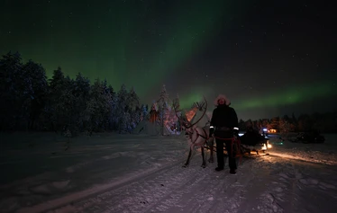 A trip to a wilderness camp, where you will get to know reindeer and go on a reindeer safari. After the ride, you will enjoy snacks and warm drinks while chatting with the guide in a traditional Lappish hut about reindeer and the local way of life.