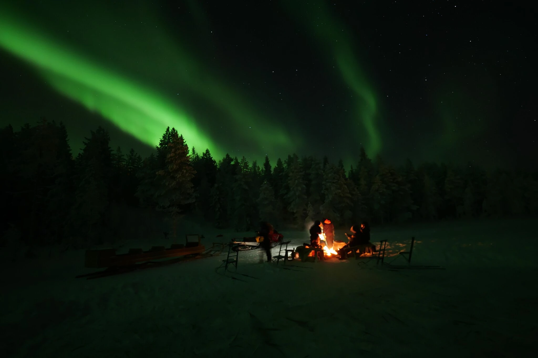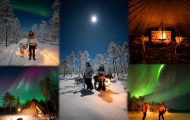 Embark on an unforgettable adventure as you travel to our winter activity park in a cozy sleigh pulled by a snowmobile, surrounded by soft reindeer hides and the magical snowy forest. Nestled by a serene forest lake, our park offers a variety of exciting experiences for all ages! If conditions are favorable, you have a good chance of seeing the northern lights blazing across the sky.