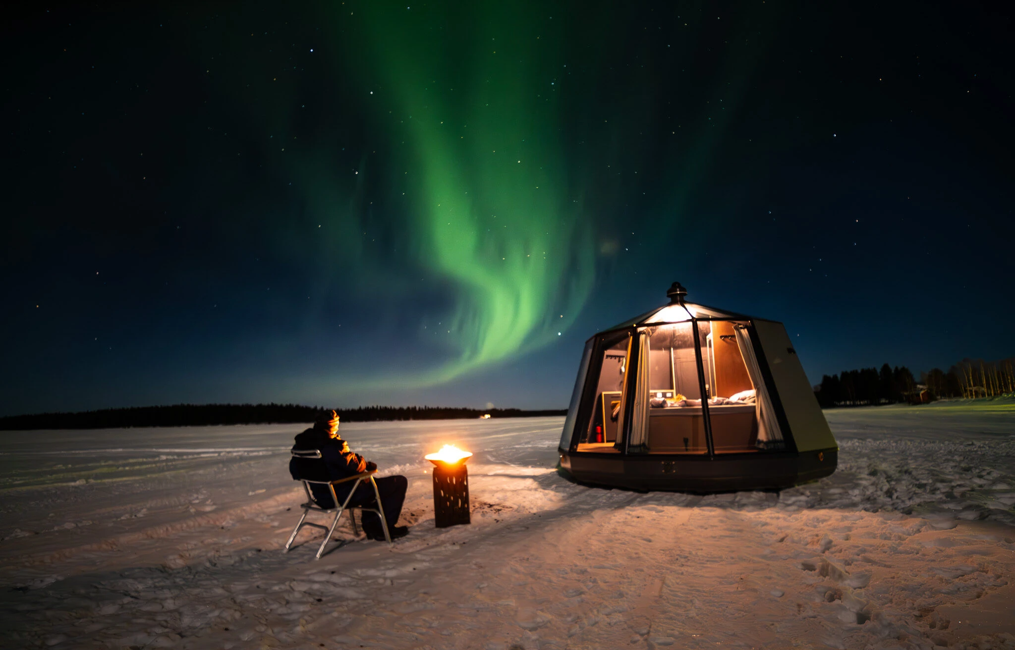 Enjoy peaceful winter evenings on the lake with your own fireplace and firewood! This experience package includes firewoods and a fireplace. You can also take chairs around the campfire.
