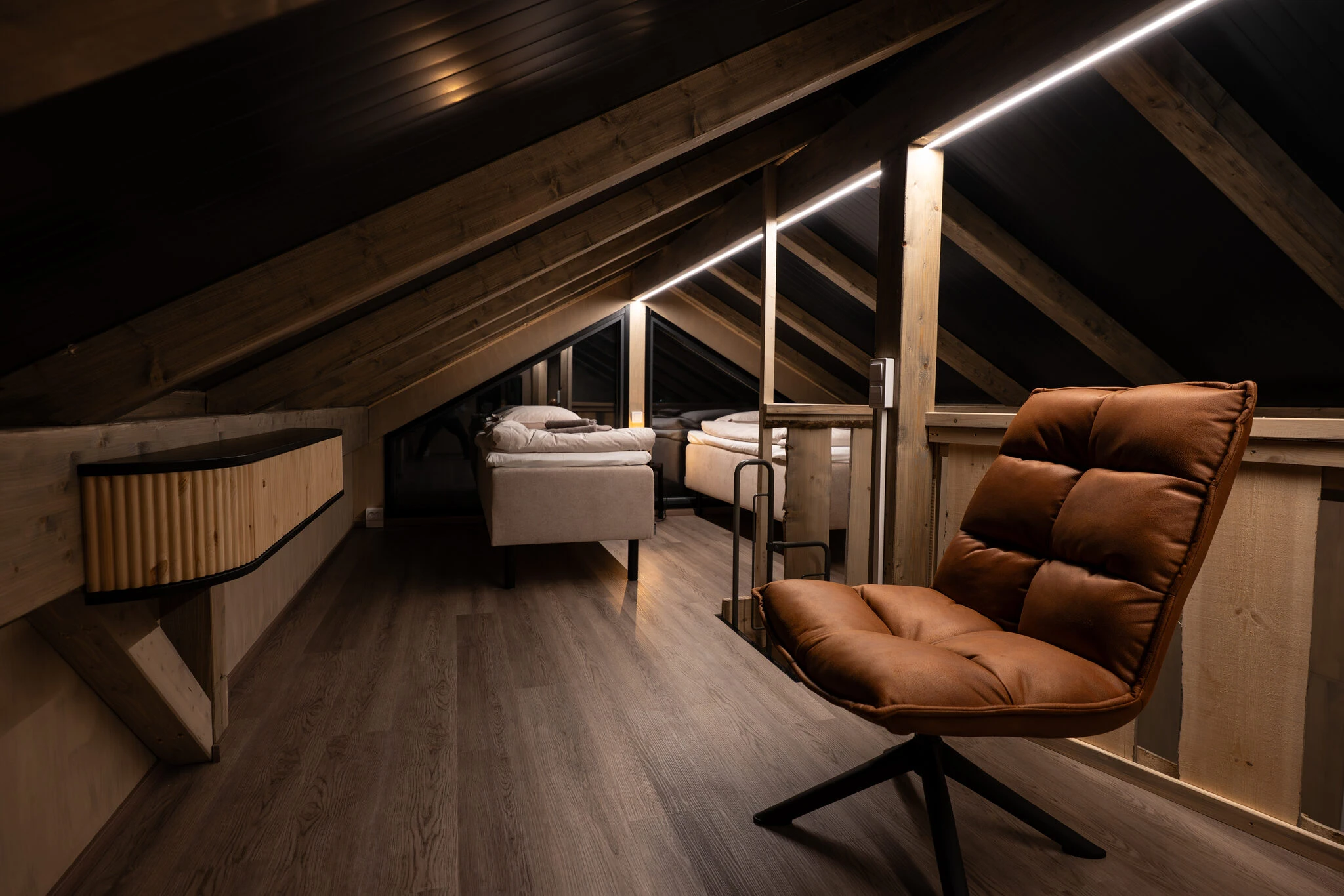 The loft offers additional sleeping space, and the cabins can accommodate 4+2