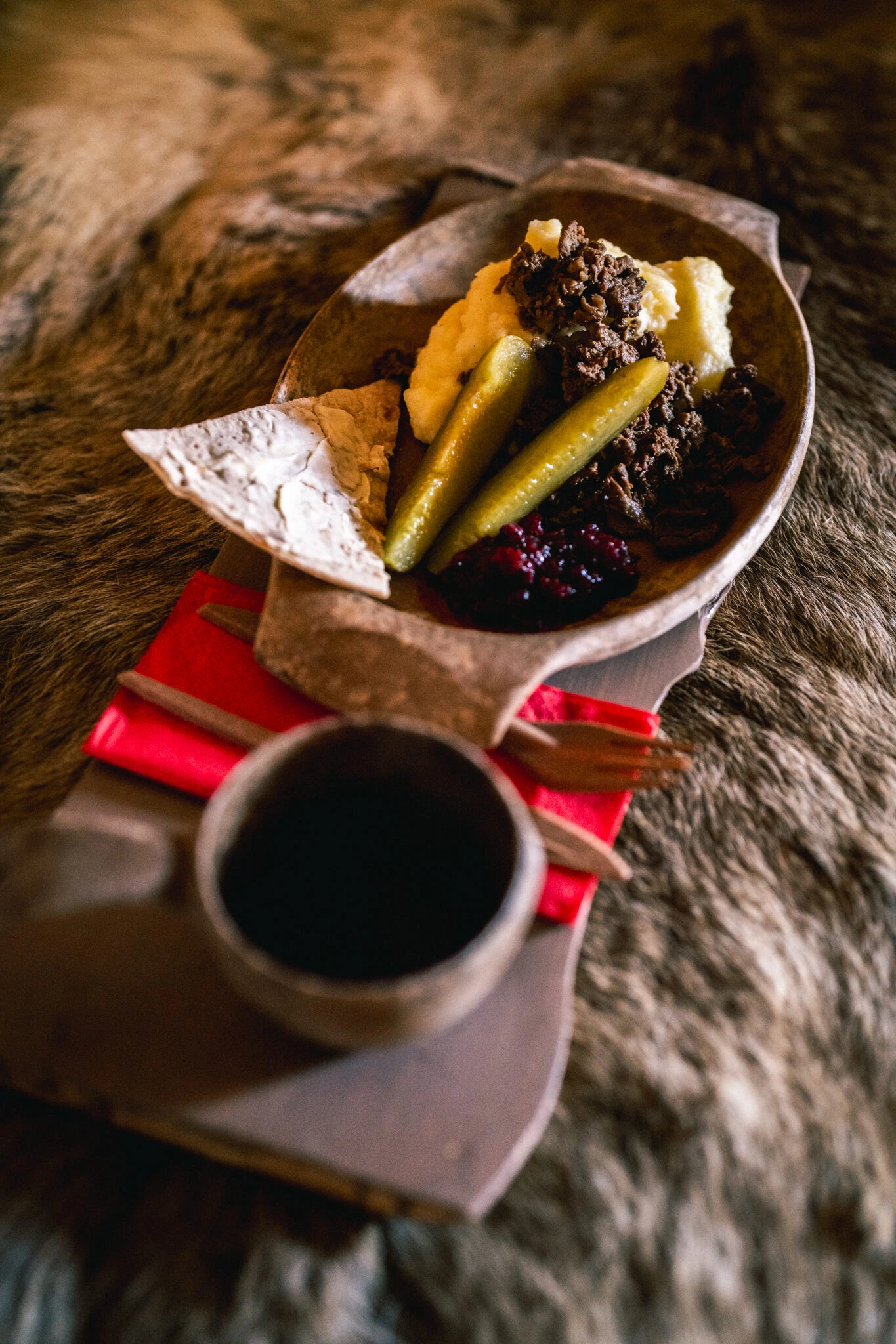 Jälkiruokana nokipannukahvit ja puolukkamoussea